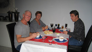 Schil een twee kilo peertjes. Die gaan in vieren in de crockpot, water erbij tot bijna boven aan de peertjes (ze staan nét niet allemaal onder). Kan ook half om half met wijn. Dan een paar scheppen erbij van speciale stoofpeertjessuiker, dan kleuren de peertjes nog mooier rood. Drie stokjes kaneel erin, uurtje of zeven laten trekken op low.